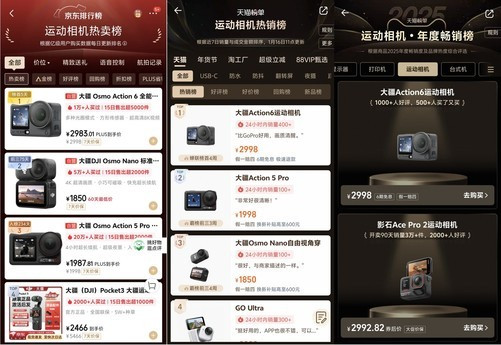 此外,在运动相机和手机稳定器两大细分领域上,大疆在2025年上新的OsmoMobile8手机稳定器和Action6运动相机同样以卓越性能与出色体验持续热销。
